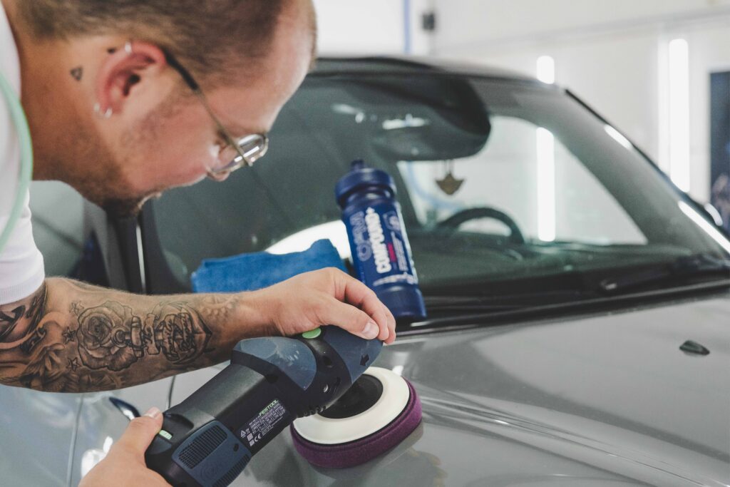 Le polissage permet de corriger les défauts présents sur la peinture tels que les micro-rayures, les marques superficielles, l’oxydation et le voile terne.